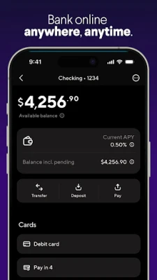 Mobile banking and investing made easy. Send money instantly, deposit checks digitally, pay bills online, track spending with budget tools, save cash in high-yield accounts, trade stocks with no commission (other fees apply).